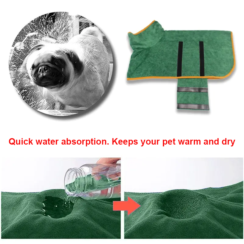 - Microfibre super absorbante : sèche efficacement votre animal après les bains ou les sorties pluvieuses, évitant ainsi la fourrure mouillée et l'inconfort dû au froid.